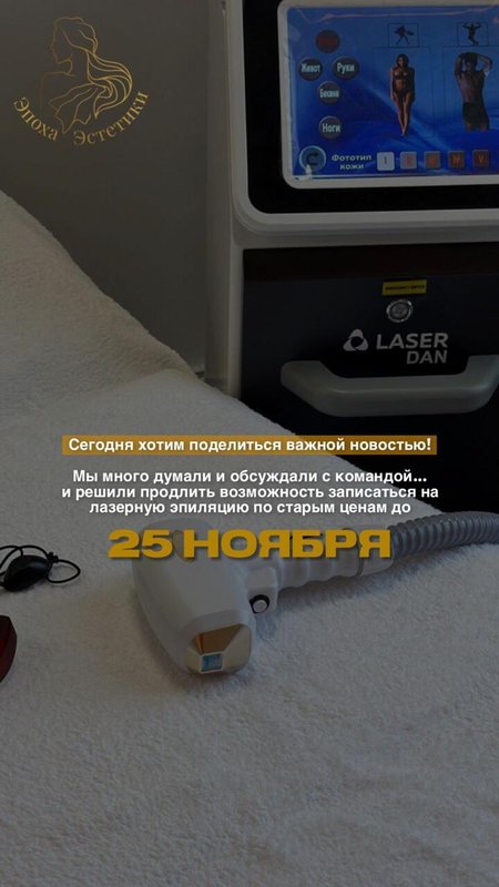 Здесь вы можете сделать лазерную эпиляцию - самый эффективный и безопасный из известных на сегодняшний день методов избавиться от нежелательных волосков на теле и безусловный хит современной косметологической науки. Даже после одного сеанса вы увидите ощутимый эстетический эффект, а полноценный курс процедур (их число и регулярность подбираются в зависимости от индивидуальных особенностей организма) - это реальный шанс избавиться от волос навсегда!